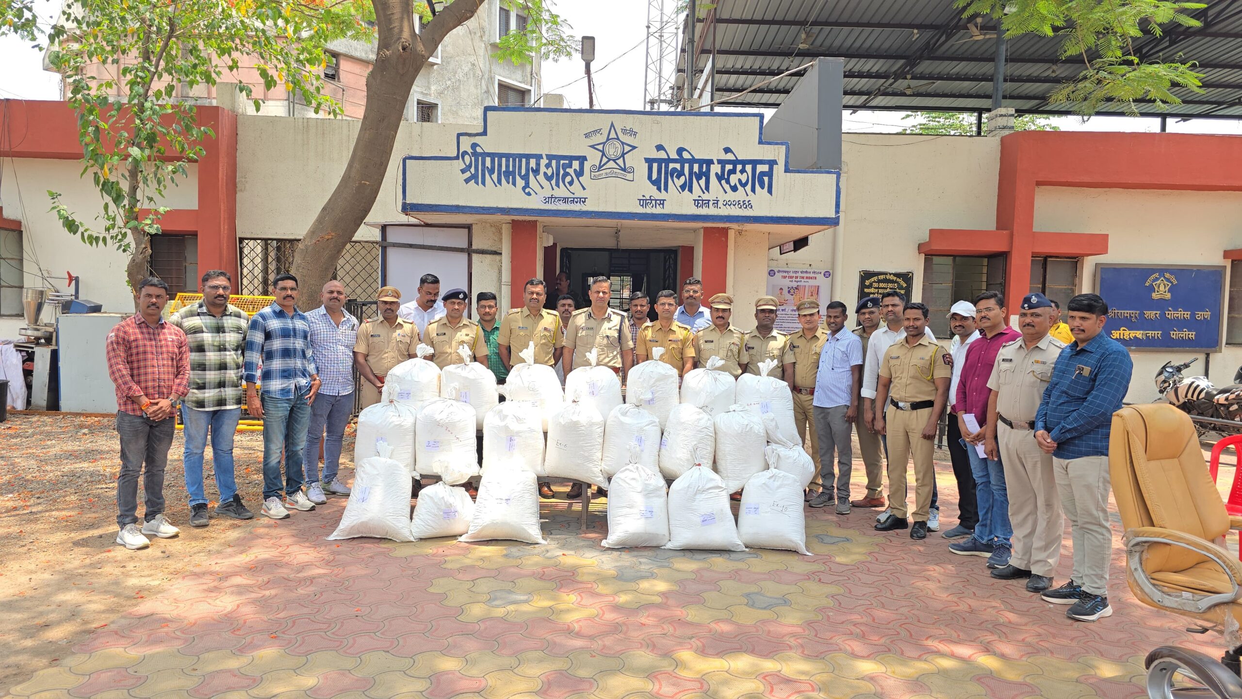 अहिल्यानगर (प्रतिनिधी):- अहिल्या नगर जिल्ह्याचे पोलीस अधीक्षक राकेश ओला यांच्या मार्गदर्शनाखाली श्रीरामपूर शहर पोलिसांनी तब्बल 13 कोटी 75 लाख 41 हजार रुपये किमतीचे अमली पदार्थ जप्त केले आहे. श्रीरामपूर विभागाचे उपविभागीय पोलीस अधिकारी डॉ.बसवराज शिवपुजे यांना गोपनीय बातमीदारामार्फत माहिती मिळाली होती की एका छोटा हत्ती टेम्पो मधून अमली पदार्थाची वाहतूक होणार आहे. त्यांनी श्रीरामपूर शहर पोलीस ठाण्याचे पोलीस निरीक्षक नितीन देशमुख यांना खात्री करून कारवाई करण्यास सांगितले. पोलीस पथकाने दिघी खंडाळा रोडवर सापळा रचून थांबले असताना एक क्रीम कलरचा टेम्पो पथकाला येताना दिसला त्या टेम्पोला थांबवून झडती घेतली असता त्यामध्ये अमली पदार्थ बनवण्यासाठी लागणारी पावडर व स्फटिक आढळले. या मुद्देमालाबाबत वाहन चालकाकडे विचारणा केली असता त्यानी सदरील माला हा विश्वनाथ कारभारी शिपणकर राहणार दौंड जिल्हा पुणे यांनी दिला असल्याचे सांगितले. मिनीनाथ विष्णू राशिनकर रा. राहता जिल्हा अहिल्यानगर, विश्वनाथ कारभारी शिपणकर राहणार दौंड जिल्हा पुणे, यांच्याविरुद्ध श्रीरामपूर शहर पोलीस ठाण्यात गुन्हा दाखल करण्यात आला आहे.सदरची कारवाई जिल्हा पोलीस अधीक्षक राकेश ओला, अप्पर पोलीस अधीक्षक वैभव कलुबर्मे, उपविभागीय पोलीस अधिकारी श्रीरामपूर विभाग बसवराज शिवपुजे,यांच्या मार्गदर्शनाखाली श्रीरामपूर शहर पोलीस ठाण्याचे पोलीस निरीक्षक नितीन देशमुख,सहाय्यक पोलीस निरीक्षक गणेश जाधव,पोलीस उपनिरीक्षक रोशन निकम, पोलीस उपनिरीक्षक रोहिदास ठोंबरे,पोलीस उपनिरीक्षक दीपक मेढे,पोना.किशोर औताडे, सोमनाथ मुंडले,संपत बडे, संभाजी खरात,मच्छिंद्र कातखडे,अमोल पडोळे,अजित पटारे,अकबर पठाण,आजिनाथ आंधळे, राहुल पोळ,रमेश रोकडे, झिने,राजेश सूर्यवंशी,बाळासाहेब गिरी,तसेच उपविभागीय पोलीस अधिकारी कार्यालयाचे पोलीस अंमलदार नितीन चव्हाण,रवींद्र बोडखे,अमोल नागले,नितीन शिरसाट,दिलीप कुऱ्हाडे,अश्विनी पवार यांनी केली आहे.